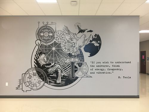 The Nikola Tesla mural reflects the idea of highlighting the real heroes of our history—scientists who paved the way for modern advancements. Tesla, an electrical engineer, physicist, and futurist, is credited as a key contributor to the design of modern alternating current electricity supply systems.